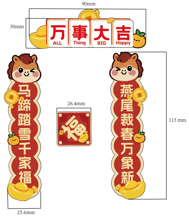 (发货清单:一个春联冰箱贴一套和50mm的大小一个大的冰箱贴(2.5mm)+6片磁贴(1mm)。