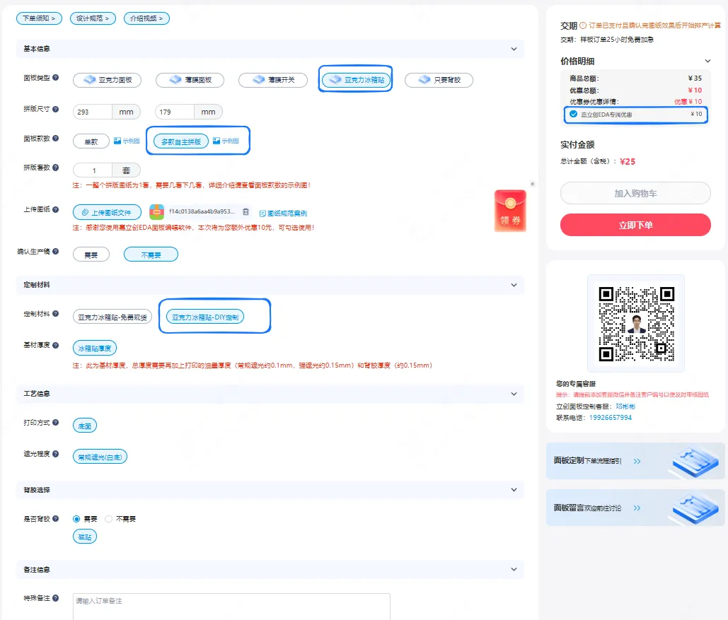 个性化定制订单仅可使用嘉立创 EDA 专属优惠券,其他类型优惠券不可使用