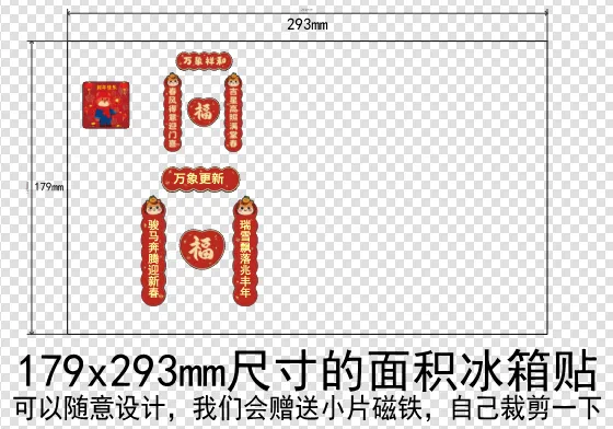 如果你想要拥有独一无二的专属冰箱贴,还可下载官方模板文件,自行添加专属图案、调整设计元素或修改尺寸,打造只属于你的新春定制好物。