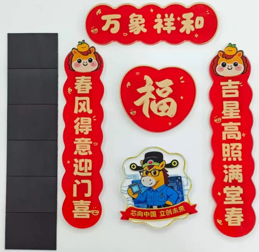 我们精心设计了六种款式春联主题亚克力冰箱贴,限量 700 套(每套随机发放)!质感通透、耐用耐看,更贴心安排:若春联图案尺寸较小,每套将有五个亚克力冰箱贴,一次集齐多样新春祝福,0 元免费